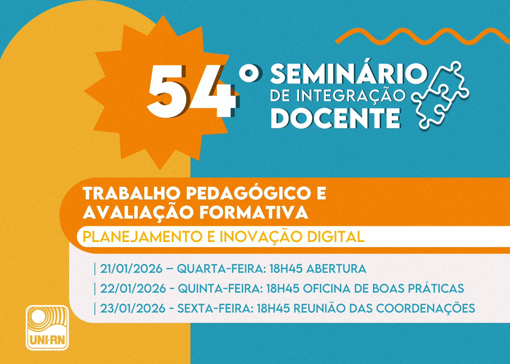 LIV SEMINÁRIO DE INTEGRAÇÃO DOCENTE DO UNI-RN - Trabalho pedagógico e avaliação formativa: planejamento e inovação digital.